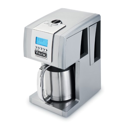 Viking 12-Cup Coffee Maker Enjoy fresh coffee or tea with the Viking 12-Cup Coffee Maker, which has a programmable clock for convenient timed brewing of four to 12 cups. The Viking Brew Break technology allows the user to pour the first cup of coffee without the wait. And its 12-cup thermal stainless steel carafe keeps coffee warm for hours and leaves no residual taste. The metallic silver coffee maker also features a removable water reservoir and brew basket for convenience when filling the water tank or basket that can both be removed and taken directly to the sink or countertop. Also included are a stainless steel permanent coffee filter and tea basket accessories. This coffee maker is intended for residential use, and has a one year warranty against manufacturing defects. Features: Metallic silver 12 cup coffee maker Programmable clock for convenient timed brewing Brews 4 to 12 cups of coffee or tea Brew Break technology allows first user to pour the first cup without the wait 12-cup thermal stainless steel carafe leaves no residual taste Carafe keeps coffee warm for hours Removable water reservoir and brew basket for convenience Stainless steel permanent water filter Tea basket accessories 1-year warranty against manufacturing defects Model: VCCM12MS